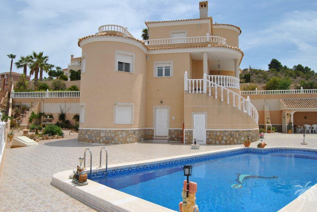 This breathtaking villa is a wonderful example of a traditional Spanish building in all its splendour. The property was delivered in 1993, and has been in mint condition ever since. The house has 6 bedrooms and 3 bathrooms, of which 2 are en-suite. There is also an apartment located on the very top floor of the villa. This has a bedroom, bathroom, kitchen and lounge area. It is reachable through an internal stairs. With a surface of 480 m², which includes the 2-car garage, this villa can be called enormous. The private pool measures 10 x 5 meter and is located on the 1200 m² plot. Despite its size, the plot has been maintained very well, as is seen on the photos. All furniture seen in the pictures is included in the price. We have a lot of pictures in our possession, please contact us for more information.