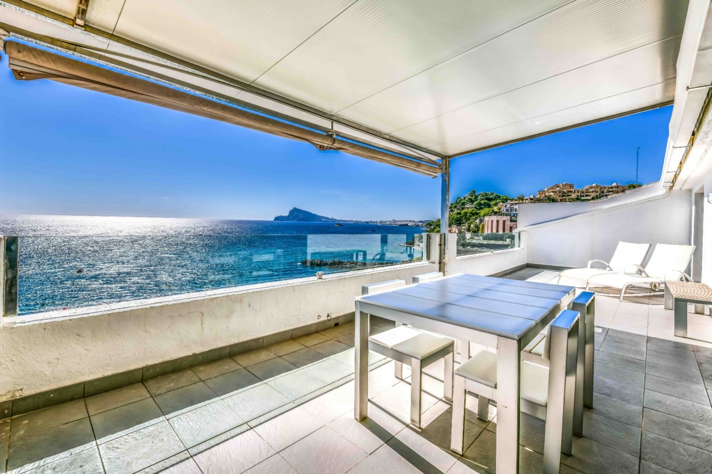 This superb penthouse is situated on the front line, opposite the Luís Campomanes marine, in the area of Mascarat, in Altea. It consists of a large and sunny terrace with stunning sea views, living room with modern kitchen with island, four bedrooms and three bathrooms. It is in perfect condition to move in and the price includes a parking space and storage room.