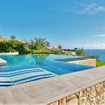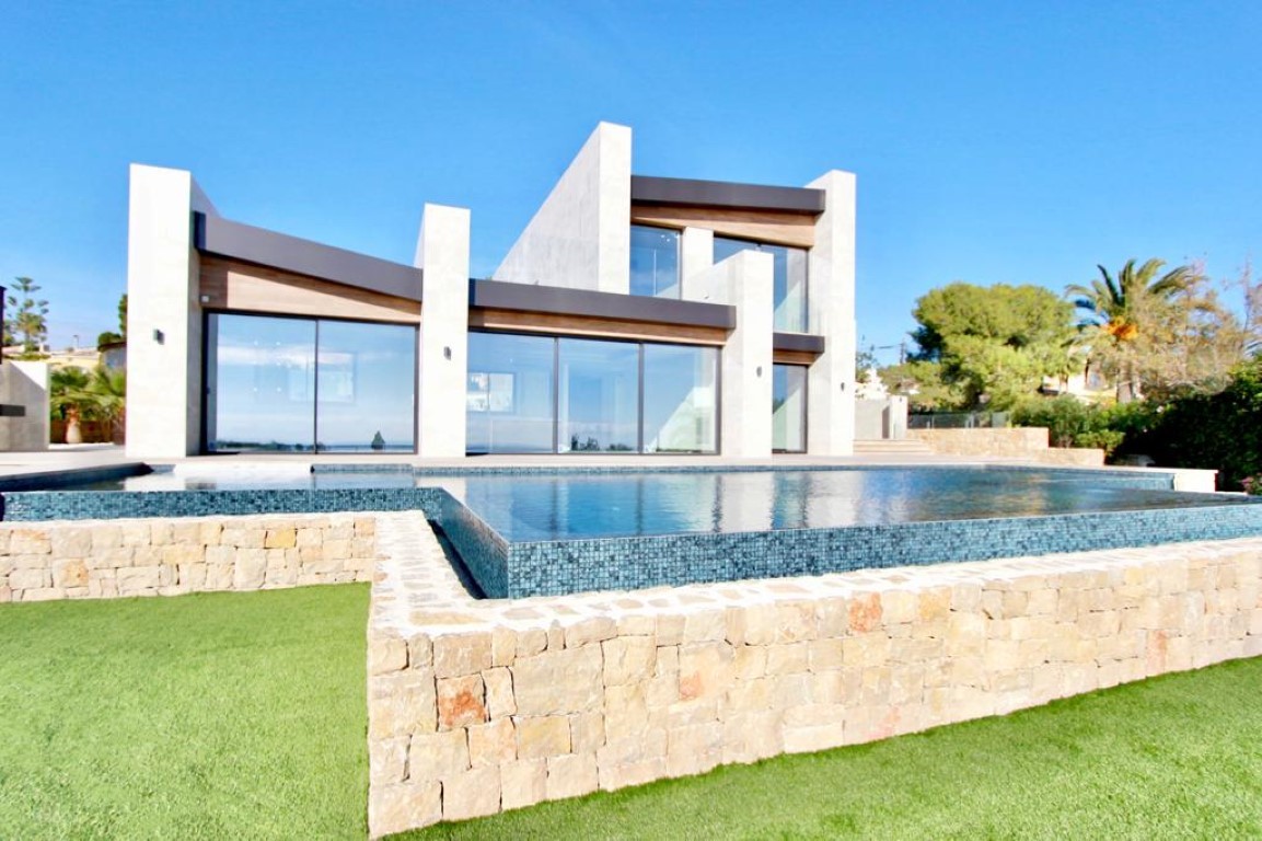 This beautiful modern villa is located in one of the most unique locations in Javea and offers breathtaking sea views. The villa is spread over 3 floors. On the ground floor there is a spacious lounge with dining area, a fully equipped modern open kitchen, a guest toilet and 2 double bedrooms with bathroom en suite. On the top floor is the master bedroom with dressing area and bathroom en suite. On the ground floor of the villa you will find the Spa which has a heated swimming pool, a gym, a sauna, a bathroom, a laundry room and a lounge. In addition to the partly covered terrace with outdoor kitchen and pool, this villa offers a spacious parking space suitable for 3 cars and the beautifully landscaped Mediterranean garden offers various other seating areas from which you can enjoy breathtaking views.