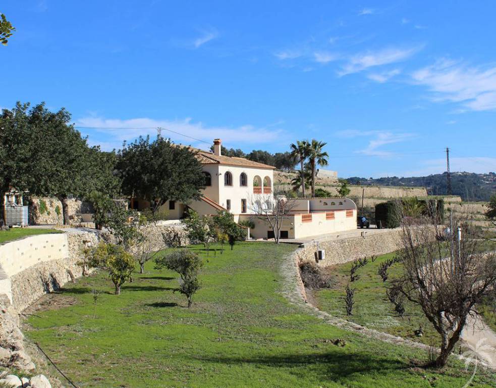 This very well maintained country estate is situated in a exceptional location, with breathtaking panoramic views over the valley and the sea. Enjoying the peace and quiet, but yet only 5 car minutes away from the town of Benissa and 10 car minutes away from Calpes sandy beaches. The ample plot is easily accessible and offers excellent possibilities for eg. horses and/or cultivation. The main accommodation is on the top floor, offering a covered entry, entry hall, a large open living space with lounge and dining area, a fully equipped modern kitchen with breakfast bar, master bedroom with luxury en-suite bathroom and walk-in wardrobe, second bedroom, bathroom, storage room and large covered terrace. On the ground floor a spacious guest apartment with lounge, dining area, 2 bedrooms and bathroom. Adjoining a fully equipped modern summer kitchen. Furthermore a separate guest studio, large garage and storage room/workshop. Outside the heated private pool, ample terracing, outside shower, ample parking space and beautiful garden. Equipped with central heating.