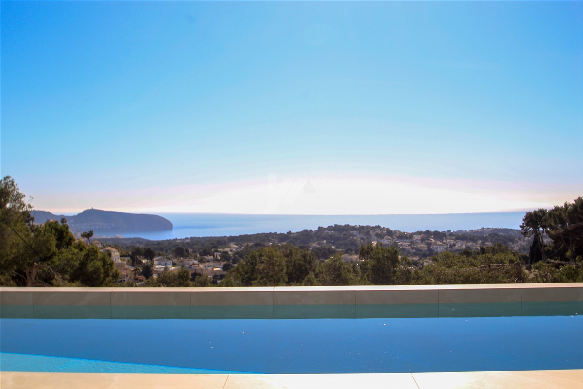 This modern villa is currently under construction using the best quality materials and is distributed over two levels linked via internal stairs. Set on a large, 960 meters plot, the property is located within the Montemar area of Benissa at just a short drive tto all amenities as well as the sandy beaches and coves along the Mediterranean coast. Access to the property can either be made via the electric sliding gate opening to an ample parking space or via the additional pedestrian gate. Entering the security door we are welcomed by an ample entrance hall that gives access to three double bedrooms with en suite bathrooms, two of which enjoy breath taking sea views. The internal staircase leads to the lower level where we find the lounge/dining area, the kitchen, a fourth double bedroom with en suite bathroom as well as a guest toilet and utility room. From this level we have direct access to the pool areas. A further level down, with separate access, we find a multi porpoise room and a bathroom that can be used either as a gym/spa/cinema or as a self-contained apartment. Outside we find the beautiful infinity pool with its large terraces. The gardens surrounding the property are low maintenance.