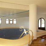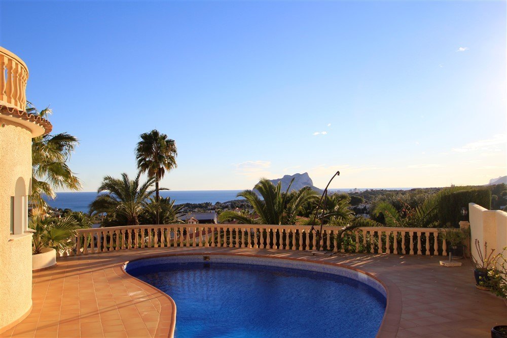Sea view villa for sale with two swimming pools (one indoor and one outdoor) in the sought-after location of San Jaime at the end of a cul-de sac and within walking distance to golf and amenities. A sweeping staircase leads up to the entrance and the lower level, which comprises of a large area with indoor swimming pool, American –style kitchen, seating area and dining area, also on this level are two double bedrooms, one with en-suite bathroom, a shower room, a utility room and a games room, with access to a double garage.  Internal stairs lead up to the upper level and a spacious area with a sofa bed, a very large lounge with beams and arches and a  feature fireplace , doors lead out to a terrace with wonderful sea and mountain views,  a dining area and open-plan kitchen.  There is a guest bedroom and shower room and a very large master bedroom with en-suite bathroom and door to a roof terrace offering panoramic sea and mountain views. Outside, and on the lower living area is an 8 x 4m swimming pool and terrace with sea views.