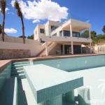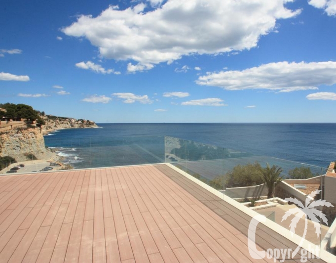 This impressive new villa of modern style with large windows is located on a beautiful front line plot next to the sea with direct access to an idyllic beach. The house consists of four bedrooms with four bathrooms and is set over two floors. The main level includes a fully equipped kitchen, dining room, glass living room with stunning sea views and access to the covered terrace and garden. On the ground floor there is a fitness room with direct access to the pool of 12 x 6 m. The house also has underfloor heating, air conditioning, electric shutters, roof terrace and a garage for 2 cars.