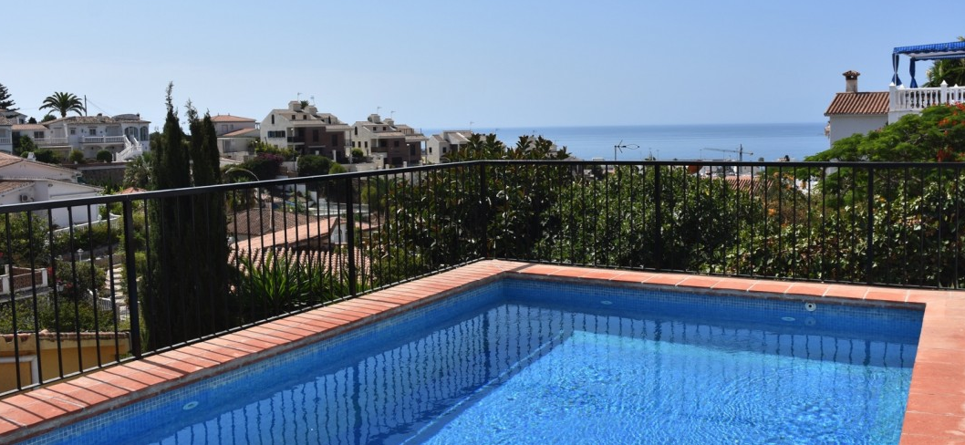 This beautiful existing big villa in very good condition, consists of 2 separate private houses, each with its own entrance. The house at street level has a spacious entrance hall, open fully equipped kitchen, the living / dining room has direct access to a spacious terrace with beautiful sea and mountain views. There are 2 double bedrooms, 1 with its own terrace, and a bathroom. The 2nd downstairs private house has a spacious entrance hall, a fully open kitchen, the living and dining room has access to the terrace and the salt water pool surrounded by spacious sun terraces with beautiful sea views. The house has 2 large bedrooms and 1 smaller room and a large bathroom. Both houses are equipped with a fireplace, air conditioning, alarm system, security, satellite TV and Wi-Fi. The plot is south oriented and has an area of 400 m2. On several terraces you can enjoy and relax in the sun with great views all day long. This villa is ideal as a permanent residence with the possibility of converting to rent out completely independent guest accommodation or as a holiday home with great rental potential. The location is in a quiet residential area and close to the port of Caleta de Vélez. It is also near the centre of Torre del Mar. Are you interested in this villa and do you want more information, please do not hesitate in contacting us.