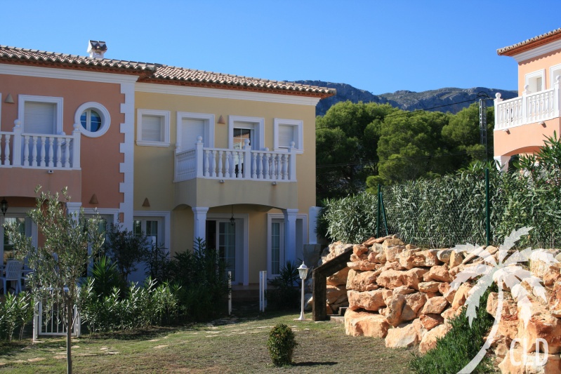 Terraced house in a new development situated in a quiet location close to the centre of Calpe with fantastic views of the town and sea. Built in the typical Mediterranean style, the ground floor consists of an entrance hall, guests WC, open kitchen with breakfast bar and a large living- and dining area with access to the covered terrace. The first floor consists of 2 bedrooms and 2 large bathrooms, one en-Suite. Both the bedrooms have access to a balcony with fantastic views. The house has a private garden with a large terrace, and a parking, the garden with direct access to the beautiful communal swimming pool and garden area.