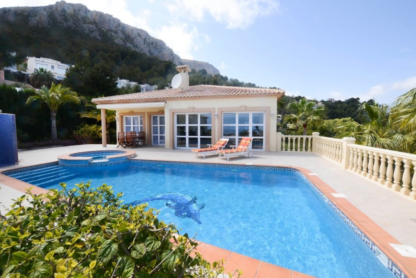 Villa for sale in Calpe with panoramic sea views, in urbanization Oltamar, located in a quiet residential area, 2 Km from the urban center of Calpe and all kinds of services. This villa enjoys very good panoramic views of the sea and the Peñon de Ifach, and sun all day, (South orientation). It is located on a plot of 964 m2 and has a total built area of 227 m2 distributed over 2 floors as follows: on the main floor we have the main house consisting of 175 m2 divided into 2 large bedrooms, 2 bathrooms and extensive living room kitchen that gives access to a nice outdoor terrace of 75 m2 with a fabulous heated pool of 9x4,5 meters. On the ground floor we have a separate apartment of 52 m2 that has 2 bedrooms, 1 bathroom and living room kitchen. The garden is very beautiful, very well maintained and low maintenance, (automatic irrigation). It also enjoys a large garage of 35 m2 and an outdoor parking area for 2 vehicles.