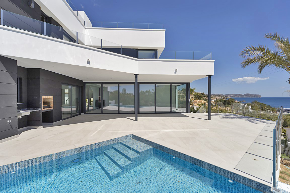 Moderne, nieuw gebouwde villa in de wijk Les Bassetes van Calpe, op slechts 150 meter van de Middellandse Zee. Deze prachtige villa heeft een fantastisch panoramisch uitzicht op zee.