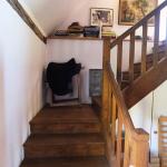 Woonkamer met pelletkachel (29 m2), eetkamer/toekomstige keuken (31 m2) met houtkachel. Badkamer met douche en wastafel (2,2 m2), separaat toilet.