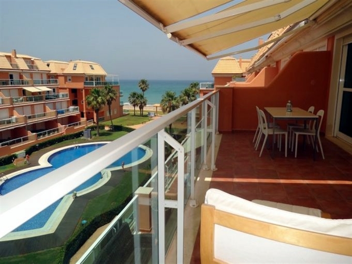 Beautiful duplex penthouse located on the sandy beach of Denia with beautiful sea views, built in 2005 in a cozy complex with large garden, communal pool, playground and paddle court. The apartment is in good condition and has a bright living room, 2 bedrooms, 2 bathrooms, kitchen with utility room and above all a large terrace of 25 m² with awnings and beautiful views. In addition, there is a storage room and an underground parking garage with direct access to the house by elevator.