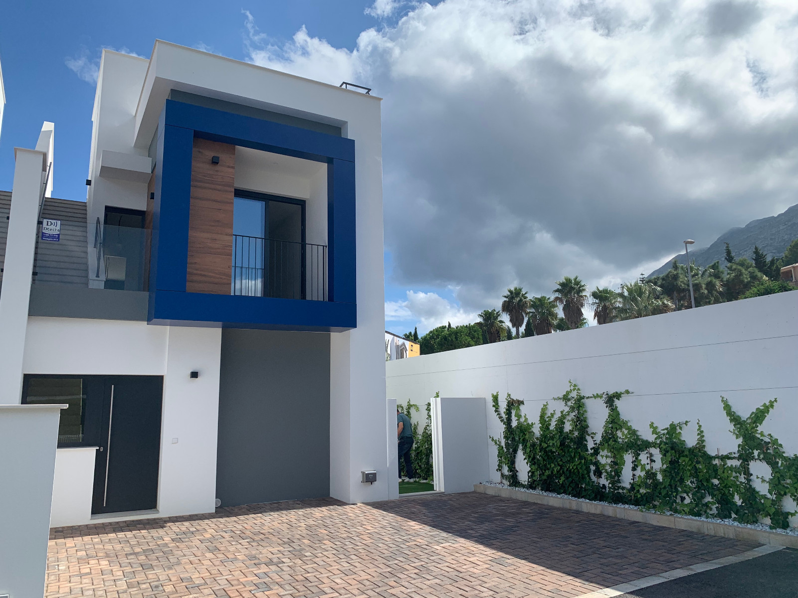 This key-ready modern villa is located in a beautiful new residential area a short distance from the town center, beach and marina of Denia and offers beautiful views of the Montgo. The house is semi-detached and is located in a closed complex with ample private parking and a bright and spacious living dining room with large sliding doors to the garden terrace, an open plan kitchen and 1 bedroom and 1 bathroom on the ground floor. There is also a space for the washing machine and dryer. On the first floor are two large bedrooms, both with en-suite shower rooms and one with walk-in closet. Finally, there is a spacious roof terrace with a view of the Montgo, the castle of Denia and the sea.