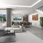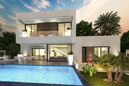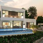 Fantastic modern design villa with panoramic sea views located in the beautiful residential area of La Sella near the golf course of Denia. The villa of 162 sqm living surface is distributed over 2 floors enjoying from a beautiful sea view. On the main floor, there is a large living room with access to the terrace and pool area, an open kitchen equipped with Bosch appliances, a double bedroom with a built-in wardrobe and bathroom en suite. On the upper floor, there are two double bedrooms with built-in wardrobes and a bathroom. From one of the bedrooms, there is access to a large terrace. There is also a private pool of 8 x 4 m, an easily maintainable garden, solar panels for hot water, air conditioning, and private off-road parking.