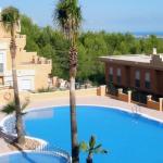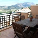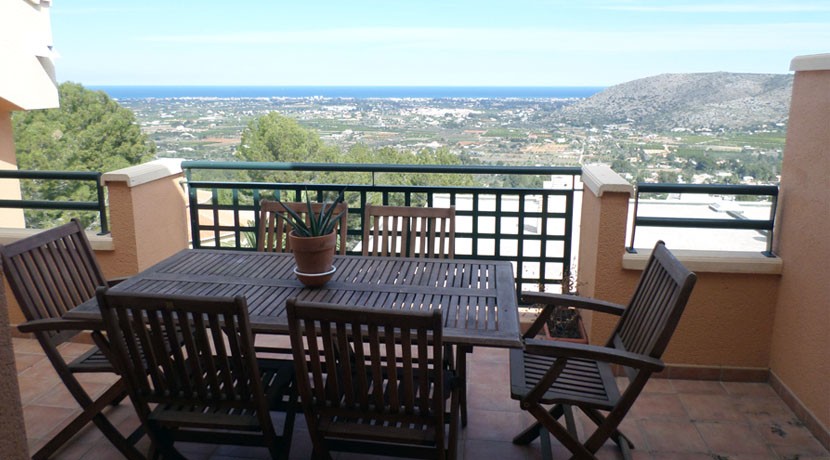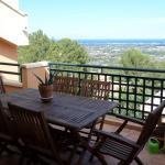 Attractive penthouse with commanding views to the Mediterranean sea, La Sella golf course and natural park Montgó on Residential La Sella golf, near Denia and the Mediterranean coast. The completely gated complex was finished in 2007 and features an impressive pool area with adjacent dressing room and toilets and a small gym. The apartment is furnished in a modern style. Due to various patio doors connecting the lounge-dining area with the terrace its interior is suffused with natural light. The two bedrooms, one with its en-suite shower bath are lying in the rear part. There is a separate bathroom with tub.