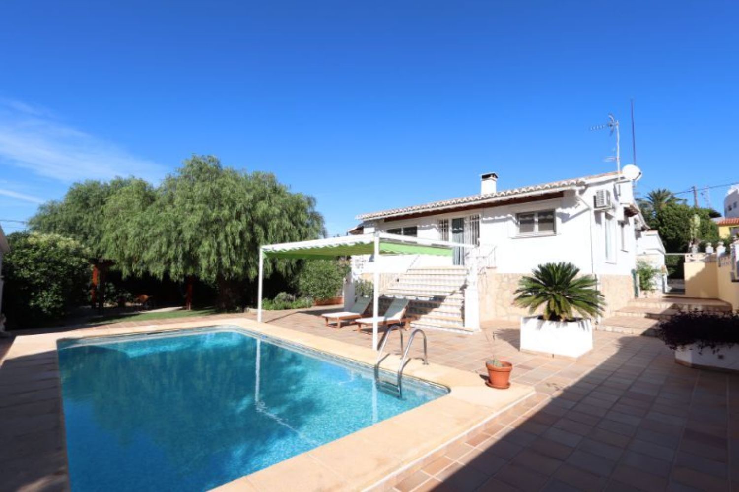 This 3 bedroom villa + 1 bedroom guest apartment is located in a popular area of Denia 1km from the beach and 2.5km from the city center on a fenced plot of 1.120m2 with beautiful garden, pool, outdoor shower and summer kitchen with barbecue . The house offers (on the he ground floor )3 bedrooms, 2 bathrooms (1 en suite), a spacious living dining room with lots of natural light, a fire place and a large kitchen with pantry and a laundry room. The apartment offers 1 bedroom and 1 bathroom. The house also has air conditioning, PVC windows with double glazing, mosquito screens and electric shutters, a sauna and a garage.