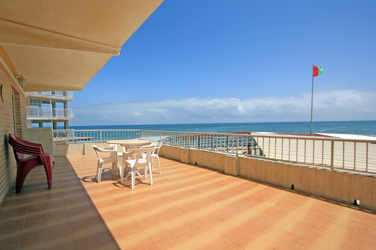 Magnificent apartment completely renovated in 2017 with frontal views of the sea. First floor without elevator, living - dining room with open kitchen and access to a large open terrace, 1 double bedroom with access to the same terrace, 1 bathroom with Italian shower and another single bedroom. Renovated with the best materials on the market: Gres floor, aluminum windows with double glazing, electric shutters, individual hot - cold air conditioning in all rooms, internet, satellite etc... It is sold furnished and with all the necessary appliances. Urbanization without common areas (garden or pool therefore minimal expenses) but with numbered covered parking and direct access to the sandy beach. Holiday area next to restaurants, shops and bus stop to Dénia.