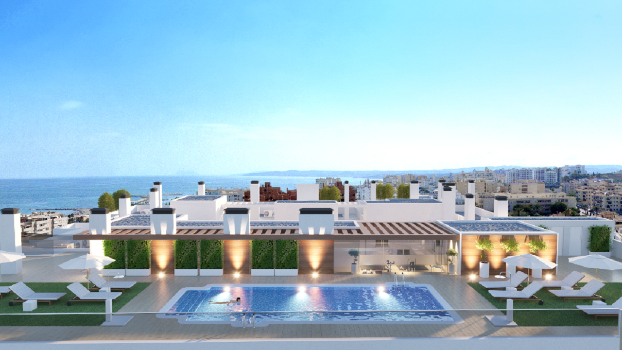 This obvious linear structure complex has 95 modern apartments with spacious 1,2 and 3 bedrooms, just 180 meters from the beach and town of Estepona. The elegant interior has been very well designed with plenty of several spaces with natural light, with the maximum finish provided by the use of high quality materials. There is a beautiful open kitchen which extends to the spacious living room. While swimming and/or fitness gym, you can simultaneously enjoy the lovely sea view on the roof. By applying high-tech construction techniques, the energy consumption of each apartment is reduced, according to a high energy certification. The price includes a parking space in the same building. There are shops on the ground floor. This project is a recommendation for investment.