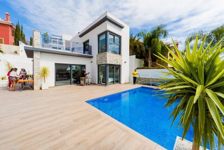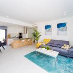 These villas are being realized in a nice village near Benidorm. There are several different types within this project, they all have heated bathroom floors, a private swimming pool and a private parking spot. This type has three floors: the basement, the ground floor and the first floor. The basement has a living / lounge room, a laundry room, a bedroom and a bathroom. There is a spacious, light living / dining room on the first floor, with an open kitchen, bedroom with and en-suite bathroom and a bedroom with a separate bathroom. The master bedroom with walk-in closet and bathroom en-suite is on the first floor. The roof terrace is also on the first floor. The fully landscaped garden has a parking spot, private swimming pool, outside shower and barbecue. Please contact us for more information.