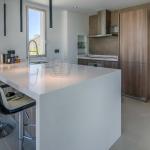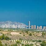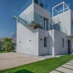 New build modern villa with stunning views towards the coast of Benidorm over the sea and mountains. The residential complex consists of 16 villas built on aprox. 540m2 plots. They consist of three bedrooms and three bathrooms, an open kitchen-living room, a beautiful garden planted with trees, a private pool of salt water and large sunny terraces. The villa is equipped with underfloor heating in all bathrooms, central air conditioning (hot and cold), Villeroy & Boch sanitary ware, Fantini taps, kitchen equipped with units and Bosch appliances, built-in wardrobes, blinds in windows, lighting with LED strips and built-in leds. Basement and solarium are optional and they are not included in the price.