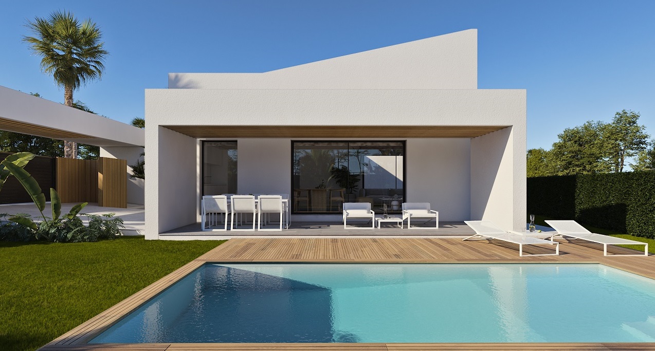 Modern new built project situated in a nice urbanisation built within just a few metres from a magnificent golf course in Fuente Álamo de Murcia. The project consist of 16 villas: 10 ground floor semi-detached villas, 2 semi-detached villas with 2 floors, 3 ground floor linked houses and 1 detached villa. Within just a few kilometres you can be in the nice village of Fuente Álamo de Murcia and after just a 30 minutes’ drive you can visit the beautiful historical city of Cartagena or you can spend the day at the beach. Are you interested in this project and do you want more information, please do not hesitate in contacting us.