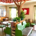 Buiten, op de veranda en rond de lunchroom, kunnen tafels en stoelen worden opgesteld.