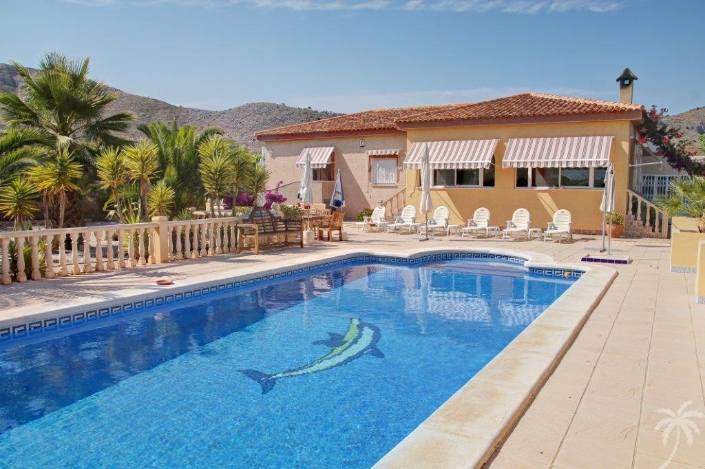 This beautifully situated finca with a separate guesthouse and swimming pool is situaded on a very big plot of of 12000 m2! Partly is this furnished as a garden, from here you can enjoy all the beautiful views of the valley. The main house has a living room with a fireplace, and in all rooms is central heating for optimal comfort. In addition to the dining kitchen there is also a spacious, complete summer kitchen / laundry room. The guesthouse consists of 2 floors and has a living-dining room, kitchen, 2 bathrooms and 2 bedrooms. This spacious finca offers countless possibilities, and is worth a visit!