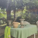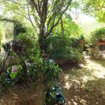 De woonkamer en de keuken hebben toegang tot een heerlijke schaduwtuin met waterput. Daar kunnen de maaltijden 's zomers genuttigd worden. De slaapkamers kijken ook uit op deze tuin. Verderop op het terrein is een gedeelte met oude fruitrassen, die een geweldige oogst geven. Het terrein heeft een wijds en vrij uitzicht.