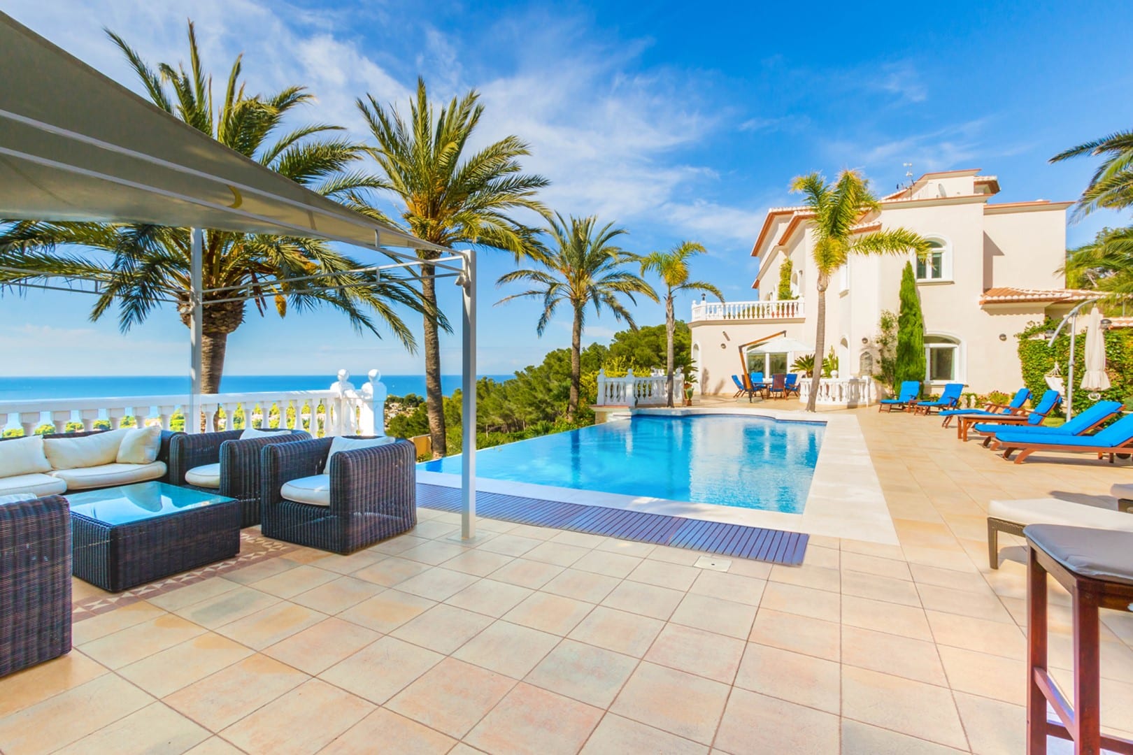 Een luxueuse villa met veel privacy en met een fabelachtig 180 graden panoramisch uitzicht op de Montgo, het berglandschap, de baai van Javea en de Middellandse Zee.