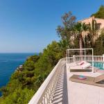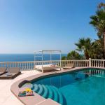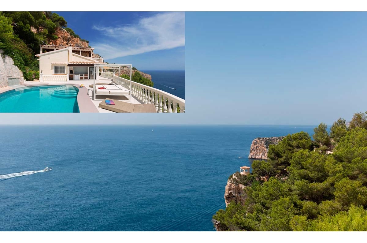 De eerste verdieping heeft een woon-eetkamer met Amerikaanse keuken van bijna 90m2 met een fantastisch uitzicht op zee, een terras, twee slaapkamers met elk een eigen badkamer en een extra grote slaapkamer met uitzicht op zee, en een gastentoilet. Vanuit de woonkamer is er toegang tot het terras aan het zwembad, de jacuzzi, de waterval en de zomerkeuken.