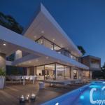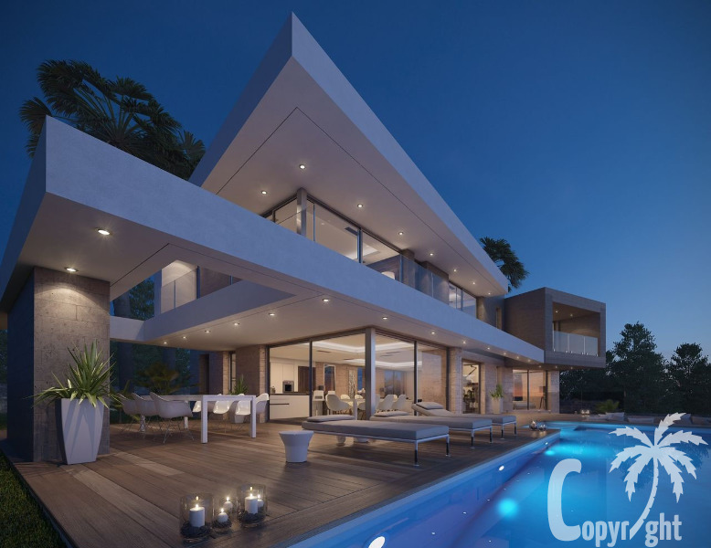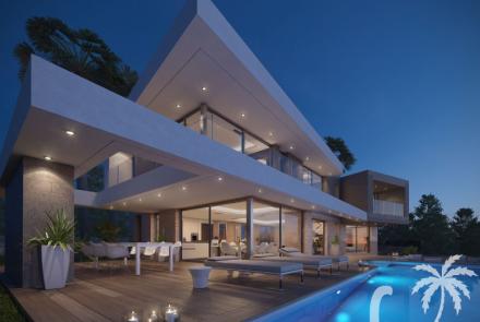 This contemporary villa with a surface area of less than 350 m² will be built on a beautiful plot of 1,500 m² in a luxury residential area of Javea. The house has four bedrooms, four bathrooms, a living room, kitchen, storeroom and gym.