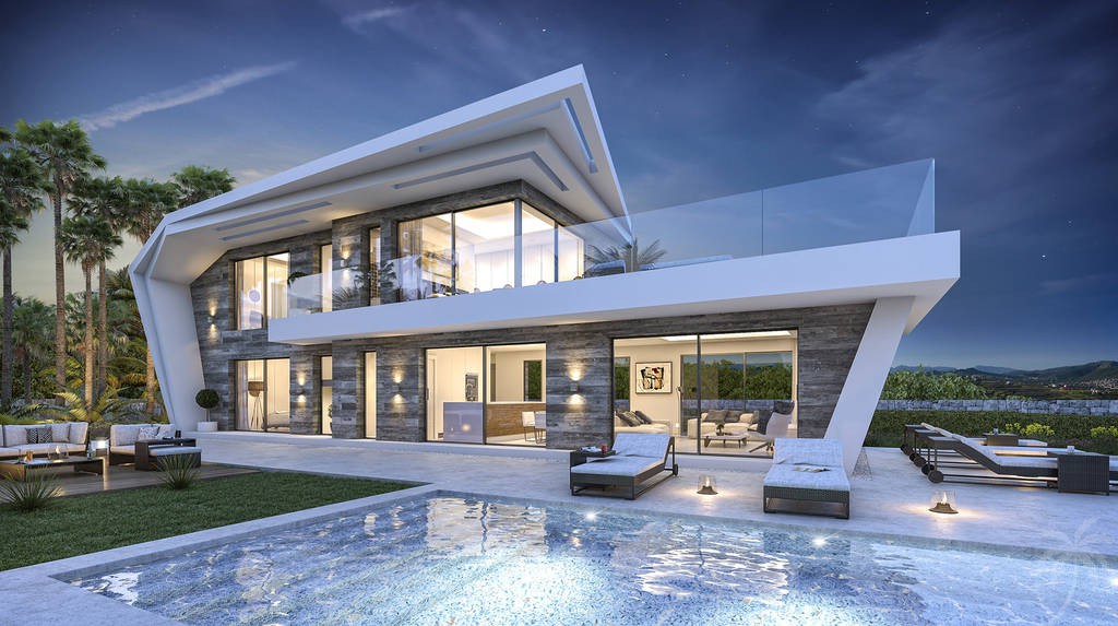 This impressive Modern Villa has been designed for an exclusive plot in Jávea with panoramic views. The privileged location of the house and the unique design allow you to enjoy excellent views of the sea and the valley. This modern and original villa is just 8 minutes drive from the beach and the Arenal shopping area where you can find shops and boutiques for all ages and restaurants where you can taste the exquisite Mediterranean food. This exceptional property has a total living area of 163 m2 and sits on a plot of 1000 m2. It is distributed on two floors. On the ground floor, there is a living room with a modern fully equipped kitchen, a toilet and a bedroom with en suite bathroom. This area offers direct access to the outdoor terrace, with swimming pool and beautiful panoramic views of the Montgó natural park and the sea on the horizon. On the first floor of the Villa there are two bedrooms en suite with fitted wardrobes. The master bedroom has access to a beautiful terrace with lovely views. The villa was designed with high quality materials and the best finishes. A beautiful garden surrounds the villa, creating a perfect place to enjoy and relax.