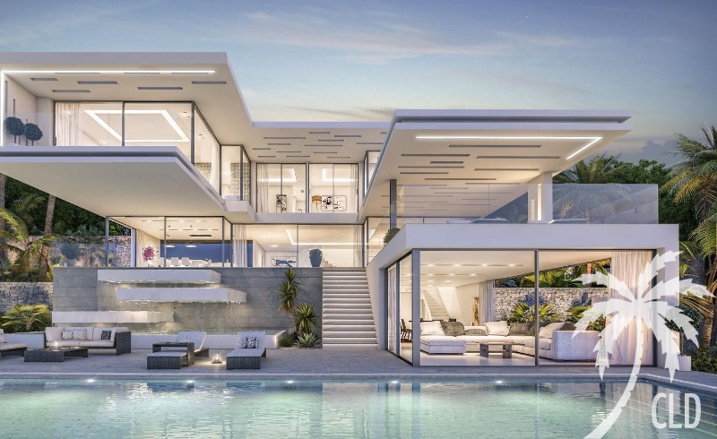 Modern villa project with superb sea views on an exquisite 1370 m2 plot near a sought after cove. When accessing to the house, the entrance hall offers us beautiful sea views. On this floor there is located a parking for two cars, the staircase and a lift that allows us enter to the house. On the first floor of the house, we find the tranquility of the bedrooms with a total of 4 bedrooms.Alll rooms have a large private bathroom, built-in cupboards and privileged sea views. Three of the bedrooms also enjoy independ3ent access to its own terrace. On the main floor of the house, we go into a luxurious living room of 150 m2 of surface. Trough it we can access to the large terrace. At the end of it, there is an Infinity pool of 14 x 6. Also on this floor there is a luxurious design kitchen with all the latest equipment technology. On the lower floor of the Villa, the recreation area is located. Here there is a private Spa where you can relax, an indoor heated pool and access to a beautiful terrace. There is also a luxurious cinema room.