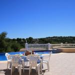 De villa heeft 3 slaapkamers, een in beide vleugels van het lagere niveau en de derde in de toren op de bovenverdieping. Er zijn ook drie badkamers, een en suite in de slaapkamer in de toren, een en suite in een van de slaapkamers beneden alsmede een tweede grote badkamer beneden. Er is een woon / eetkamer die uitkomt op een overdekt terras en bij het zwembad.