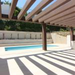 De bovenste verdieping is de living van het huis en heeft toegang tot het zwembad en de tuin. Er is een prachtig woon- / eetgedeelte, uitgebreid door een open terras op het noorden en een op het zuiden gelegen overdekt terras, een volledig uitgeruste keuken, een gastentoilet en de hoofdslaapkamer met een eigen badkamer met jacuzzi, een kleedruimte en twee terrassen.