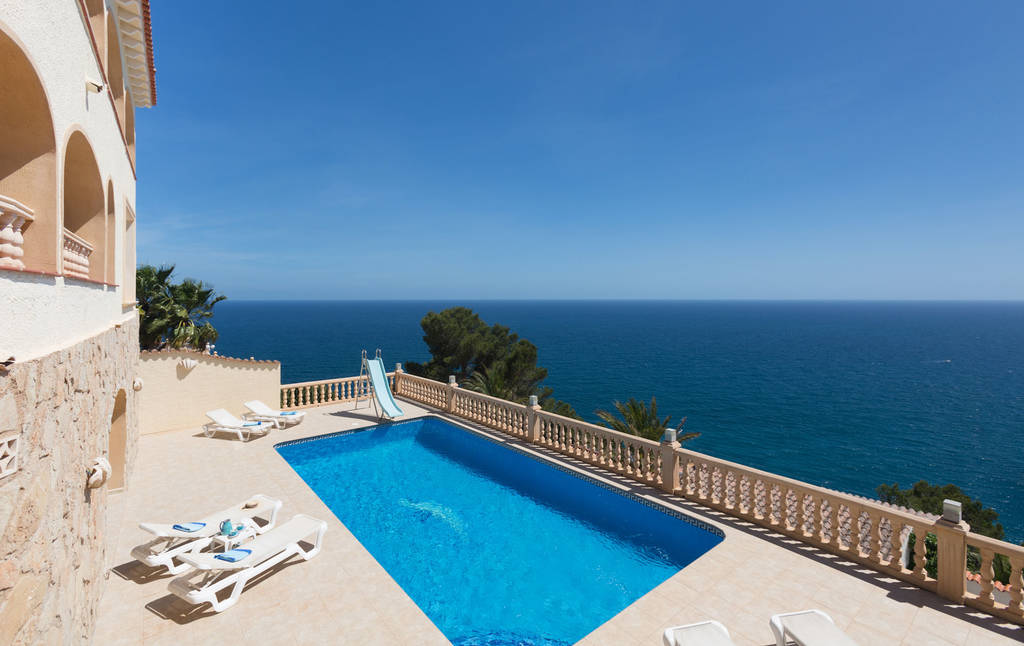 A strikingly beautiful and classically Levantine architectural style characterises the façade of this property and picturesque, natural stone walls, gallery style balconies and curved arches look out towards the Mediterranean Sea, coming together to form that irresistible blend of rich tradition and grandiose nature that is not uncommon in architecture and location on the northern Costa Blanca. This imposing villa is a splendid specimen of the Mediterranean lifestyle and offers, with its light-flooded rooms, glorious sea view and endless coastal panorama, the perfect ambience of infinite freedom and an exclusive sense of security.The most sophisticated and refined, modern fittings emphasise the extravagant feeling, while open-plan, bright rooms create a pleasant atmosphere of well-being. Covered terraces and an exquisite patio with an exotic fountain form part of the impressive highlights. It is, overall, a superb property in a location of equal standing.