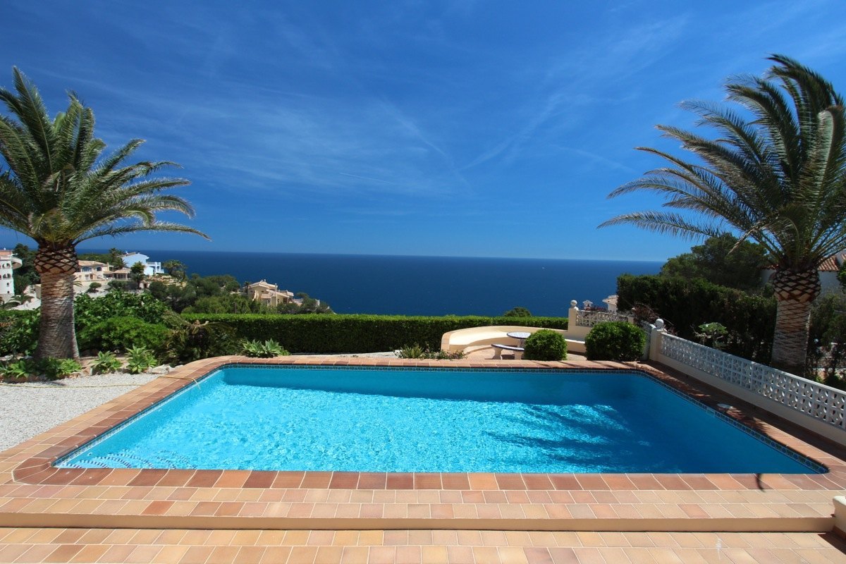 Villa with open sea views in Javea. Plot of 1185 m2 and living area of 220 m2 on two levels. Main floor: glazed terrace, spacious and bright living room with fireplace, separate fitted kitchen, 2 double bedrooms and 2 bathrooms. First floor: master bedroom with bathroom en suite and terrace. Underfloor heating. Terrace with barbecue. 10x5 pool with large terrace around enjoying beautiful sea views.