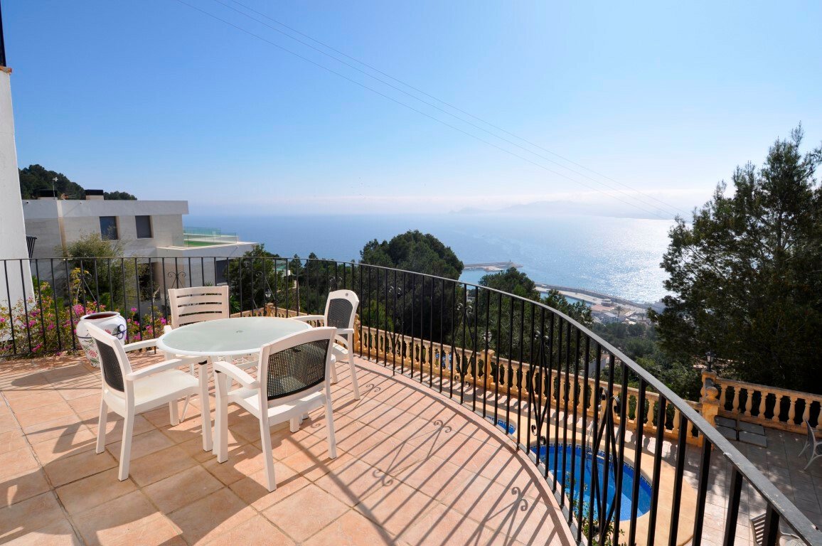This beautiful villa is located in one of the best areas in Cuesta San Antonio with impressive views of the sea and the bay of Jávea. The property is arranged over three floors with a lift. The main floor consists of a large living-dining room with fireplace, completely equipped kitchen, a bedroom, the master en-suite bedroom, a guest toilet and a fantastic covered terrace with large windows and spectacular views. The ground floor hosts the sleeping quarters comprising four bedrooms, an en-suite bathroom and an independent bathroom plus a lounge with access to a terrace and access to the pool and terrace area. There is also an independent apartment with a bedroom and a bathroom located on another level. The property features a lovely garden, pool, central heating, air conditioning in some of the bedrooms, lift, solar panels, parking space and a garage.