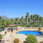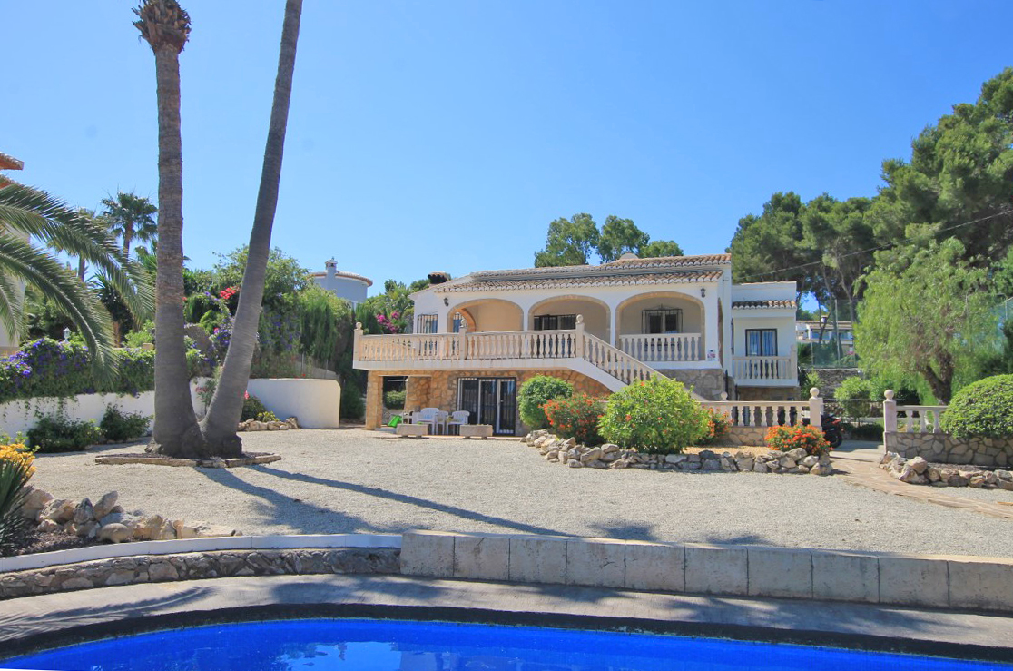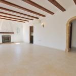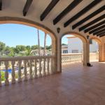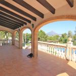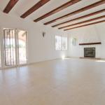 Deur naar volledig ingerichte keuken, voorzien van 5 pits gaskookplaat, elektrische oven, vaatwasser. Deur vanuit de keuken naar een grote bijkeuken, dubbele glazen deuren leiden naar de achtertuin. Vanuit de woonkamer leidt een boog naar een kleine gang, waar zich twee tweepersoonskamers bevinden (een met een klein balkon met uitzicht op Montgo), een tweepersoonskamer; een bad/doucheruimte en nog een doucheruimte met inloopdouche. Alle slaapkamers hebben ingebouwde kasten. Er is een afsluitbare interne trap naar de begane grond.