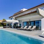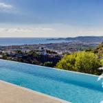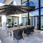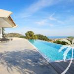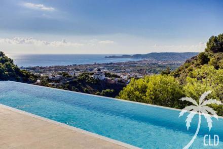 Modern Design Villa with South orientated panoramic views encompassing the Mediterranean sea, the old Town of Javea and surrounding countryside, this striking modern designer villa has been thoughtfully designed and extrmely well constructed. Accessed via the upper garage level the main living areas below are approached either by glass elevator or the open mezzanine staircase. The main living area contains 4 bedrooms , 3 matching bathrooms and 1 w.c., along with a large open plan living room with double sided cassette fire place with TV area. The Symmetrical kitchen/dining area and the living room both access the ample terrace and 15m x 3m infinity pool. Below on the lowest level is an ample sized self contained guest/staff apartment along with multiple storerooms and a very large room suitable for converting into a games room, home cinema room or Spa area with gymnasium.