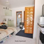 Een ander op zichzelf staand appartement, toegankelijk via een buitentrap, dit is een studio-appartement: de woon- en slaapkamer heeft een grote kledingkast voor opslag en een televisie / ontspanningsruimte. De keuken heeft alles wat je nodig hebt om zelfvoorzienend te zijn, er is een aparte grote doucheruimte met een gootsteen en ook een apart toilet en een wasmachine. Het studio appartement heeft het voordeel van een eigen privé dakterras.