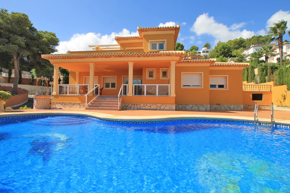 De tuin is onderhoudsarm aangelegd rondom het niervormige zwembad van 9x5m. Binnen het ommuurde perceel is er ruimte om 4 auto’s te parkeren, plus een grote garage van 86m².