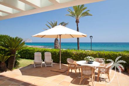 This truly paradisiacal property, in a spectacular location and with an enchanting view of the majestic blue, yet simultaneously hidden and secluded, is situated at the end of one of the most popular bays in the Mediterranean Sea expanse between Valencia and Alicante. Just a few metres of picturesque, rocky beach, a narrow paseo and its own glorious terrace separate the unusual, designer villa, with a front-facade directly facing the sea, from the tempting water.