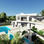 This beautiful sea view villa is currently under construction and will be ready soon. On the ground floor there are three double bedrooms, each with their own bathroom en suite. On the first floor there is a spacious lounge with dining area, a modern kitchen and the master bedroom with bathroom en suite. In addition to the spacious balcony on the first floor, this villa has a beautiful covered terrace with outdoor kitchen located near the pool.