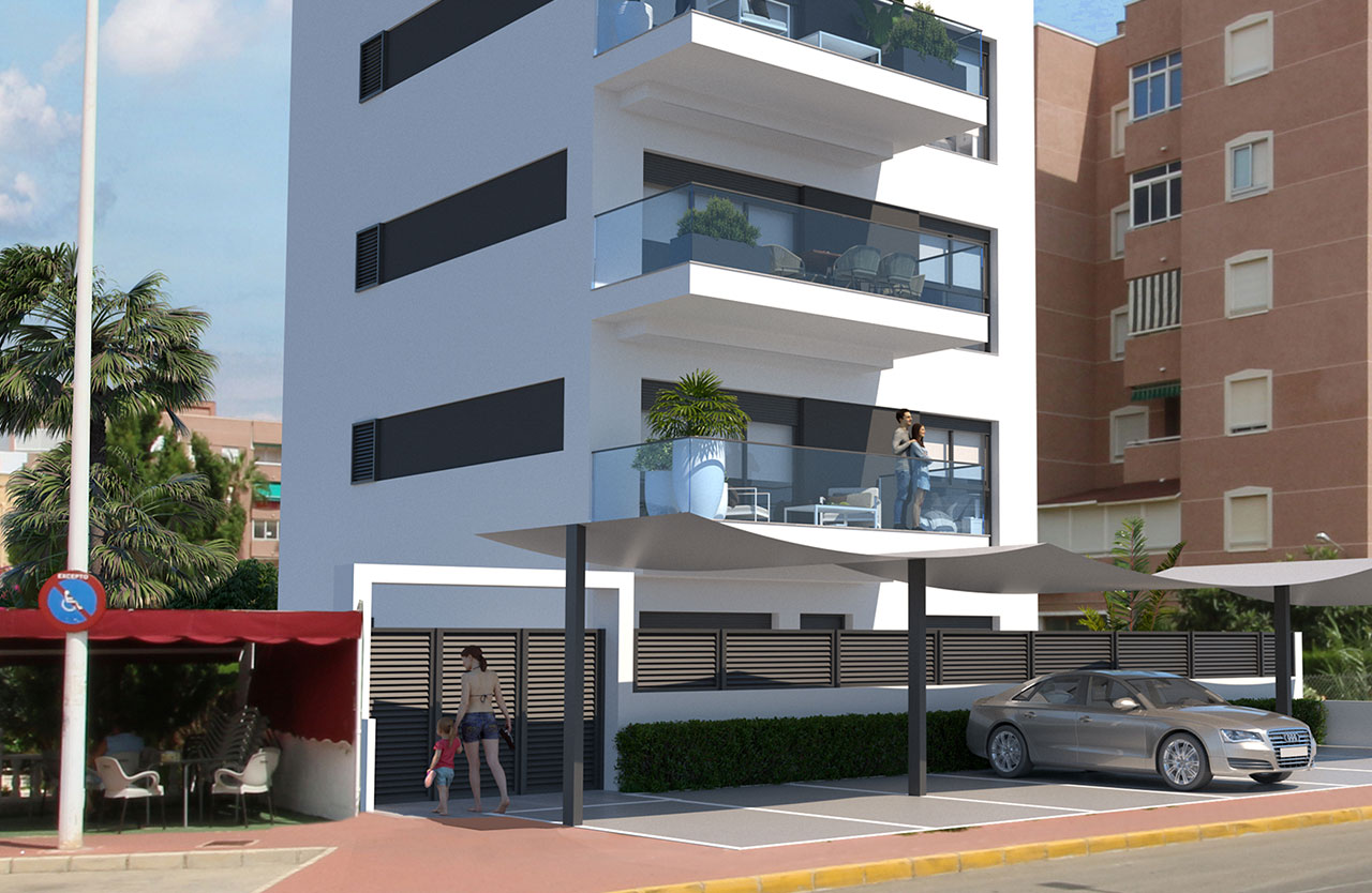 Modern and contemporary new built project situated within walking distance from the beach and the nice center of La Mata. The project consist of a penthouse with private solarium, ground floor apartment with private garden and 2 bedroom apartments. Each property consist of 2 bedrooms, 2 bathrooms, a cosy living room, kitchen and storage. There is also an underground parking space for each apartment. You can enjoy the lovely Spanish climate at the communal swimming pool. Many amenities like shops, restaurants, public transport, etc. are situated within walking distance. Are you interested in this project and do you want more information, please do not hesitate in contacting us.
