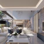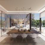 This modern villa, which has now been built, is located almost directly by the sea. The villa is spread over 3 floors. On the ground floor there is a spacious lounge with dining area, a fully equipped modern open kitchen, a laundry room, a guest toilet, an office space and the master bedroom with dressing area and bathroom en suite. On the first floor there are 4 double bedrooms with bathroom en suite. In the basement of the villa there is a guest apartment with a lounge, a kitchen and a double bedroom. Also located here is a spacious storage room, a garage which is suitable for 2 cars and a room which can be used for various purposes such as a gym or a home cinema.