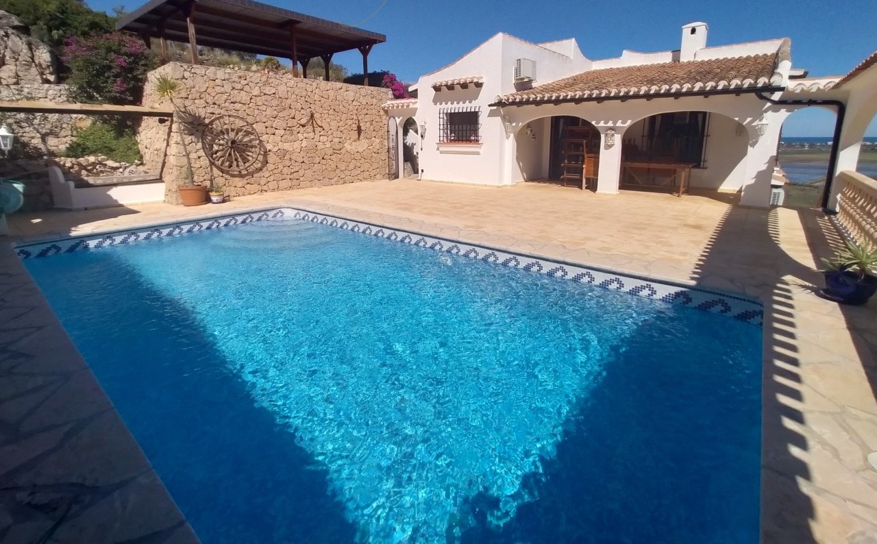 This villa is located near the entrance of Monte Pego and was built in 1999. The house has been completely renovated with modern kitchen and bathrooms and has beautiful sea views. On the main level is the living dining room with open kitchen, access to the naya and pool, two bedrooms and 1 bathroom. In the basement is the guest house consisting of 3 more bedrooms, 2 bathrooms, living dining room and kitchen. In addition, there are several storage rooms, a swimming pool of 8x4m with outdoor shower and an easy-to-maintain garden.