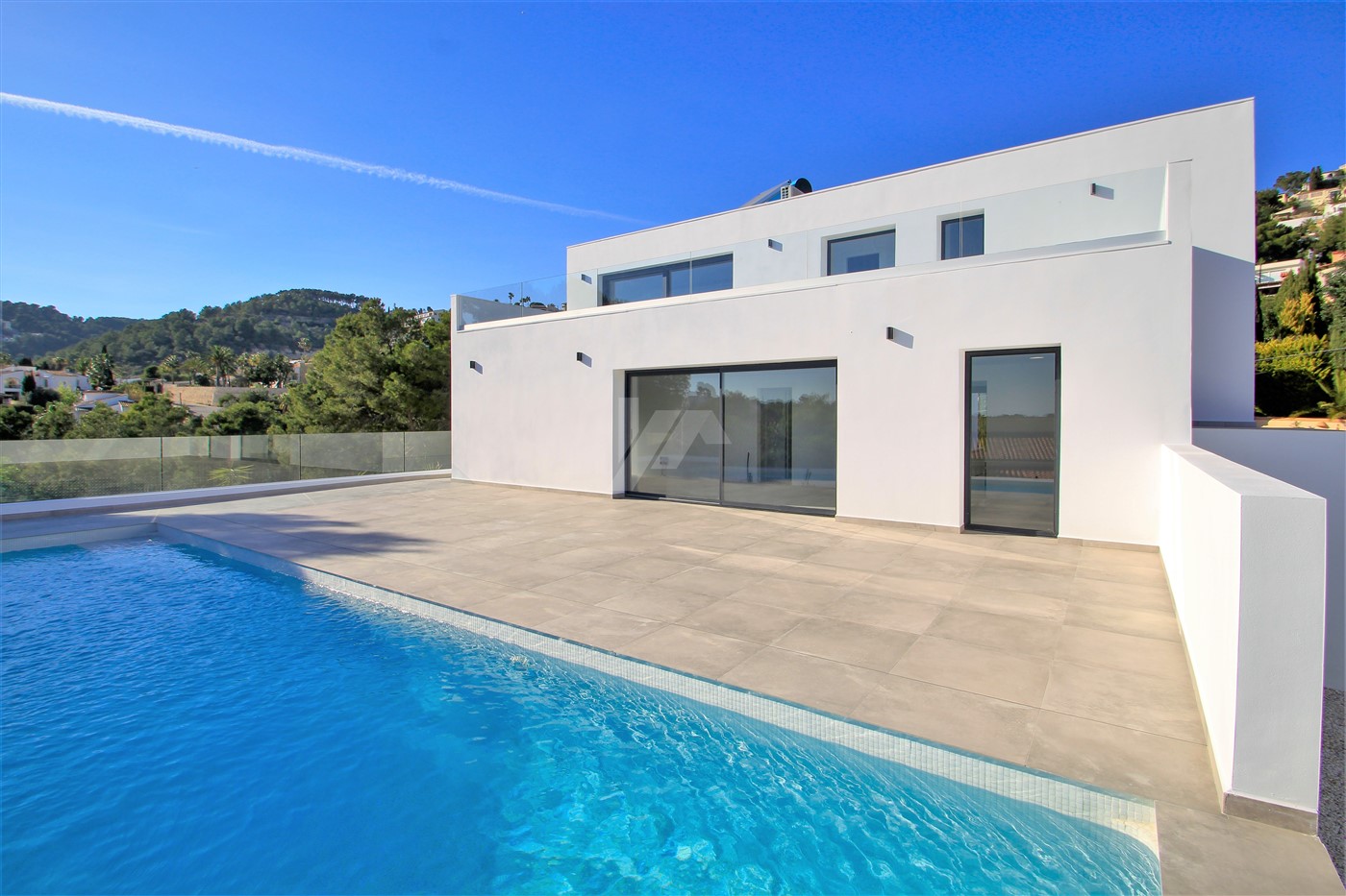 This beautiful modern villa is distributed over two levels linked via internal stairs. Set on a 800 meters plot within the Montemar area, the villa is only a short drive away from all amenities as well as the beaches and coves along the Mediterranean sea. Access to the property is made via the electric sliding gate that opens to a driveway leading to the villa. On the main level we find the lounge/dining area with its open plan kitchen and sliding doors opening to the pool area. An inner hallway gives access to two double bedrooms that share a bathroom with shower. The internal stairs lead to the upper level where we find the master bedroom with dressing room, en suite bathroom and sliding doors opening to a ample terrace that enjoys lovely views of the valleys and the sea. Outside we find the 11x3.5 meters pool with its terraces. The gardens surrounding the property will be low maintenance.