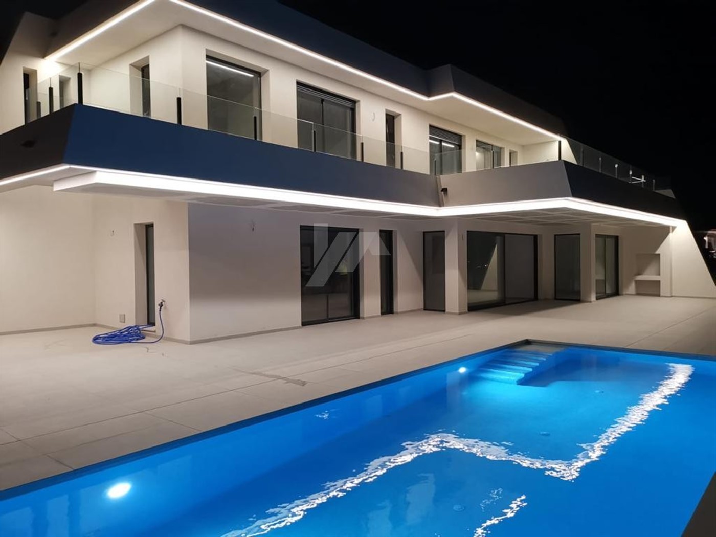 A modern new villa with a living area of 411m2 on a beautiful plot of 970m2 with panoramic sea views, located in a luxury residential area of Moraira. The villa has on the ground floor a spacious living dining room with open plan kitchen and a bedroom with bathroom. On the top floor there are 3 more bedrooms with 3 bathrooms. There are also large terraces and a beautiful swimming pool.