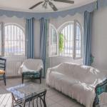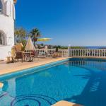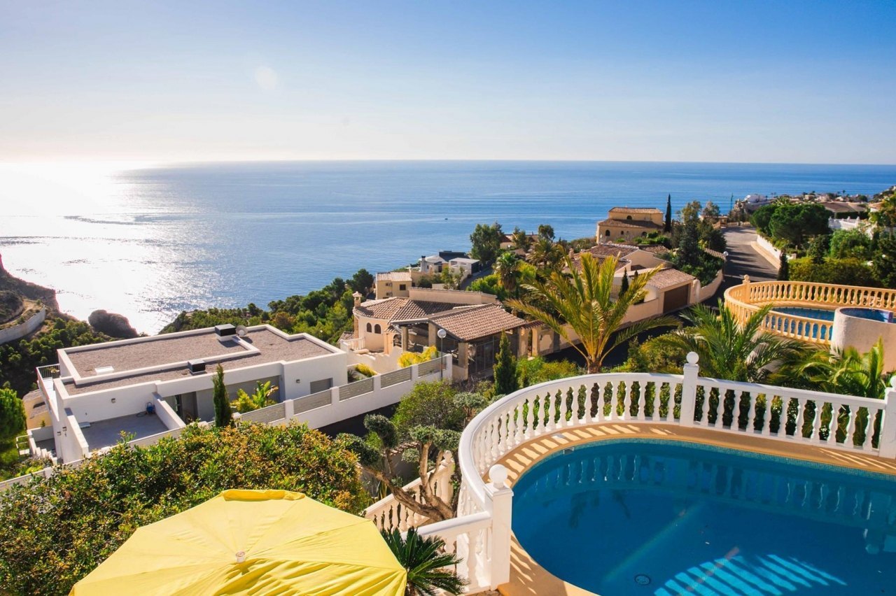 This traditional villa was built in 1990 against a mountain slope and offers impressive sea views. The house is spread over 2 floors and offers on the upper and main level a spacious living room, dining room, open kitchen, 2 bedrooms, 2 bathrooms and beautiful covered terrace with access to the terrace and covered outdoor kitchen. Via an outside staircase we reach a floor lower where the pool and terrace are located, as well as a complete guest house consisting of a living room with kitchen, 2 bedrooms and 1 bathroom. One floor below the pool terrace is another storage room and room with bathroom.
