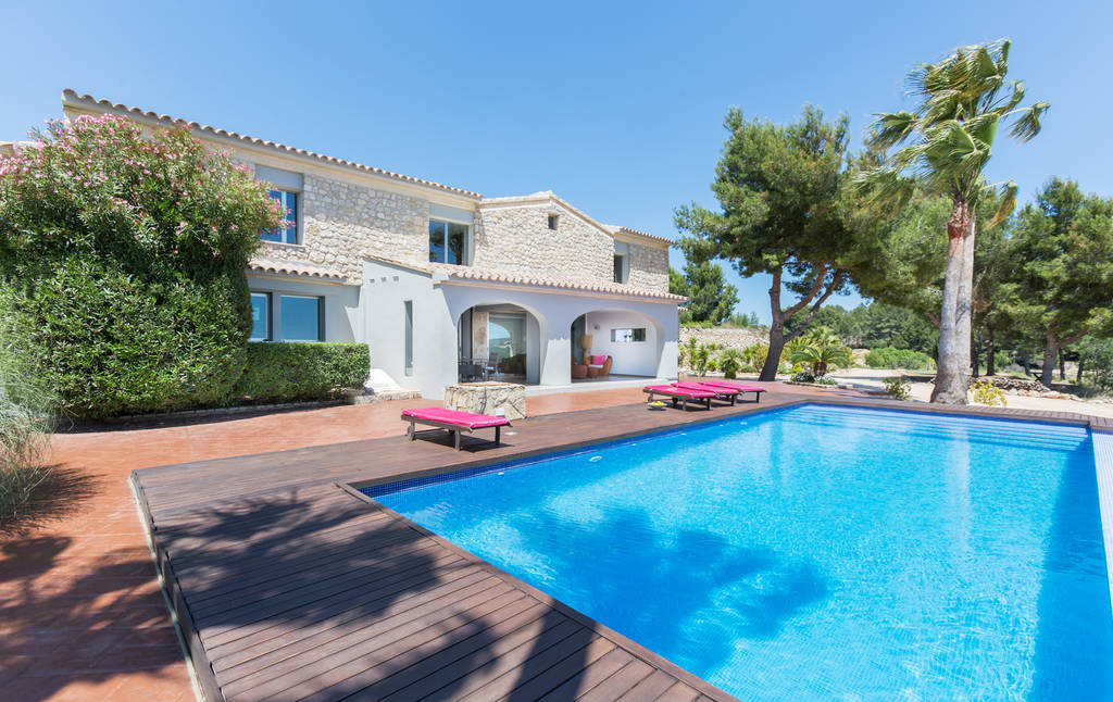 This luxury finca with beautiful sea views can be found amidst spanish wine groves and a typically rustic coastal landscape. The exterior architecture resembles, a traditional finca, while the interior brings to mind an art gallery or a modern loft. The owners and builders, furthermore, could have been inspired by a huge ship or even a luxury liner, and whatever it may have been the outcome is imposing, refined and extravagant. Bright and elegant bedrooms, superior and understated bathrooms and a strikingly perfect, high-class kitchen with the professional touch, and a sea view, surround a fascinating dwelling area of distinct height and open space. Various levels and colour-accentuated furnishings and fittings create different living areas without confining walls, while decorative amphora, numerous paintings and diverse objets d’art create a rather special ambience of pleasant note, and, despite the space, a discernible homeliness. A quite extraordinary property in a gloriously scenic location – yet close to everything, that makes life comfortable and could be of importance.