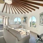 The villa is located in the residential area of the Cumbre del Sol and consists of a main house and guest apartment below. The main floor offers two bedrooms, a bathroom, living room and kitchen and one the lower floor there is a living room, bedroom, bathroom and kitchen. There is also a double garage.