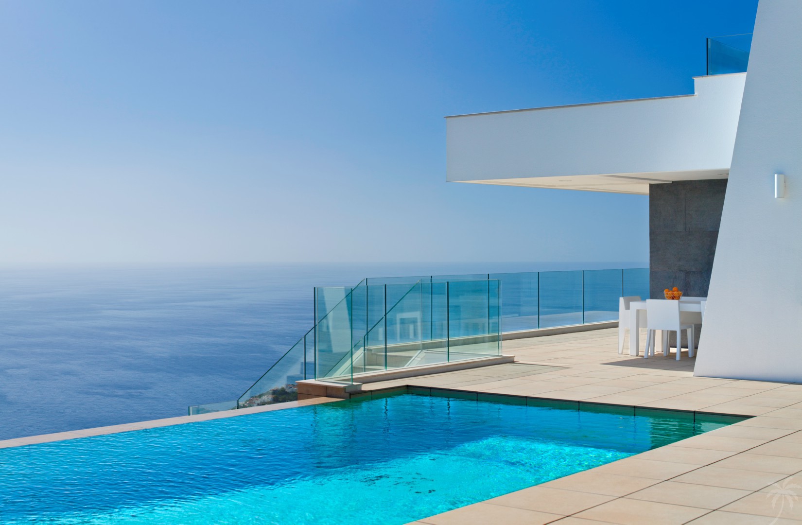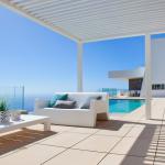 A modern style house with spacious terraces and never-ending sea views. The villa is accessed from the upper street; the entrance hall of the house is the core of this floor, connected to the double garage, two double bedrooms, a full bathroom and a terrace, with a large picture window with exceptional views. From here we access the main floor of the house, where the master bedroom is situated, with a dressing room and en suite, a spacious living room, a fully equipped kitchen with pantry and a guest toilet. The exterior of this house deserves special mention, because of its over 110sqm terrace, with a veranda and a spectacular infinity edge pool, a BBQ with annexed guest toilet, a nice garden and spectacular sea views.